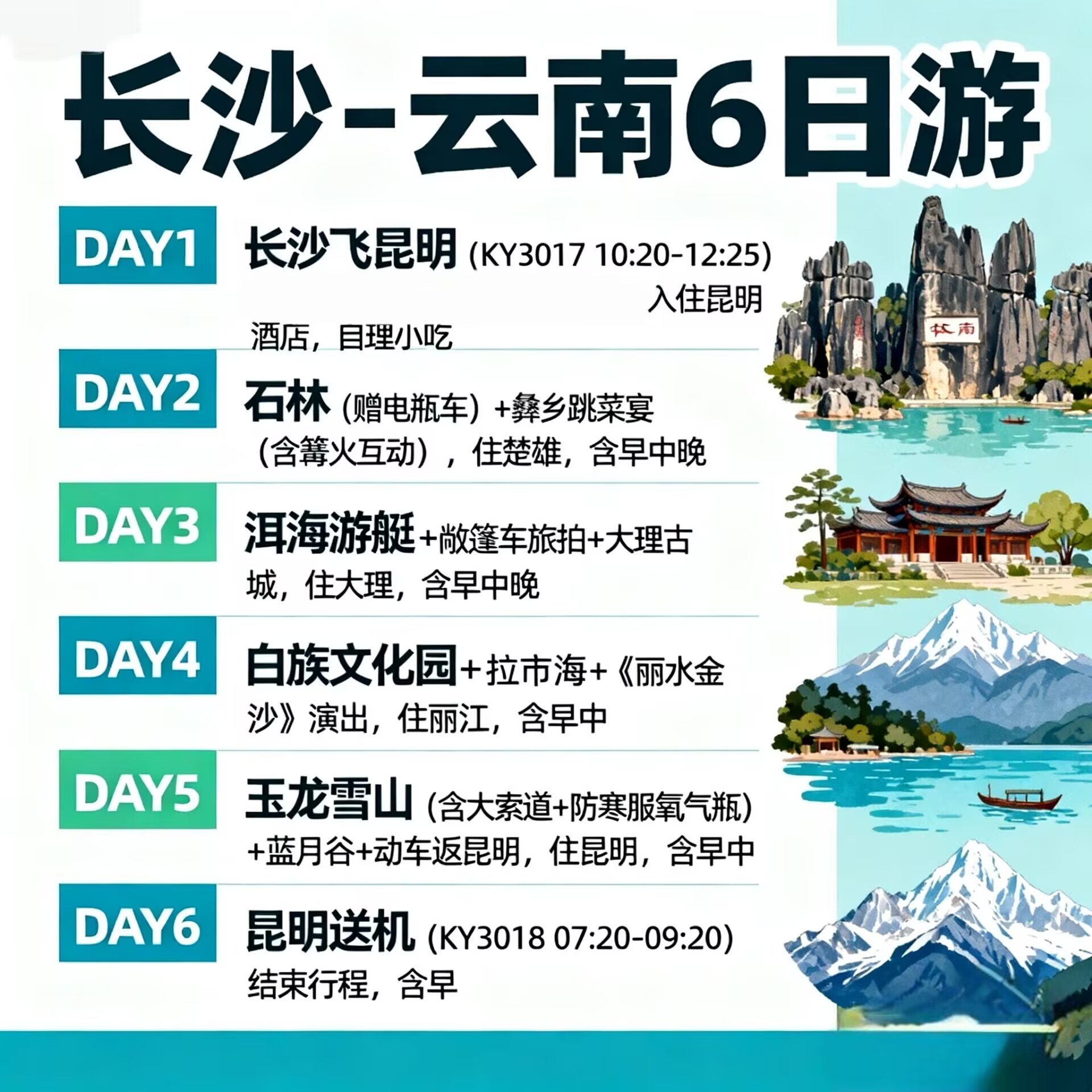 行程设计科学,覆盖云南核心目的地