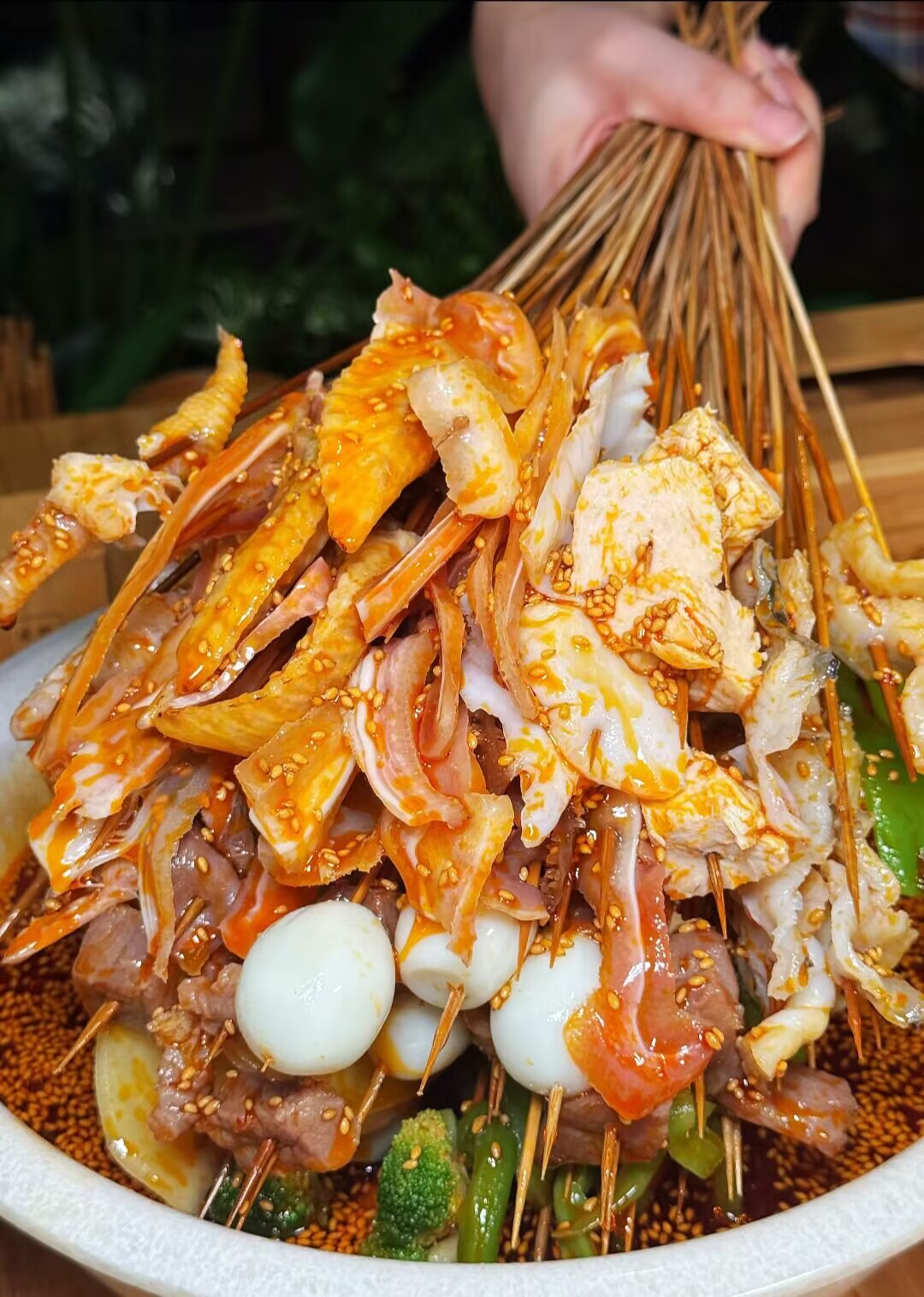 12:00 前往“叶婆婆钵钵鸡”门店享用午餐(用餐时间约1小时)。作为乐山必吃的特色美食,“叶婆婆”开店已37年,是当地公认的正宗钵钵鸡代表,凭借独特风味吸引众多食客心甘情愿日日排队,可在此尽情品尝地道乐山味道。