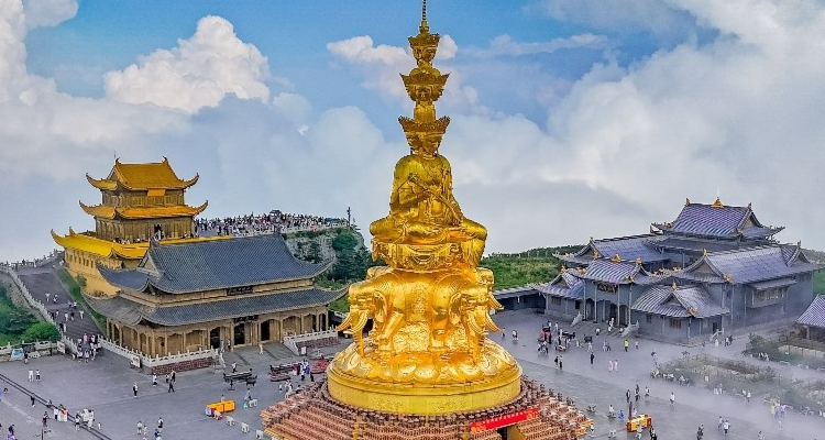 7:30 酒店享用早餐后,乘车前往峨眉山,开启当日游览行程(车程及前期准备约1.5小时)。抵达景区后,乘坐观光车(费用90元/人自理,车程约2小时)前往雷洞坪,下车后徒步至接引殿(徒步时间约30分钟)。随后可选择乘坐上行索道(80元/人自理,索道运行时间约15分钟)前往金顶,峨眉金顶是以一尊48米高的十方普贤铜像为中心,由耀日的金殿、雄浑的铜殿、灼灼的银殿和洁白的朝圣大道组成的新金顶。顶上是个小平原,原有铜殿一座,在太阳的照射下,光彩夺目,故而得名金顶。登上金顶,人们顿觉万象排空,气势磅礴,惊叹天地之奇妙。金顶为峨眉山游程的最高峰,海拔达3077米,在此可尽情观赏山间风光,若天气条件适宜,还有机会欣赏到峨眉四大奇景——日出、云海、佛光、圣灯(金顶游览时间约2小时)。游览结束后,可乘坐下行索道(40元/人自理)返回接引殿,再徒步至雷洞坪,乘坐观光车下山(费用已含在前期90元内,车程约2小时)。
