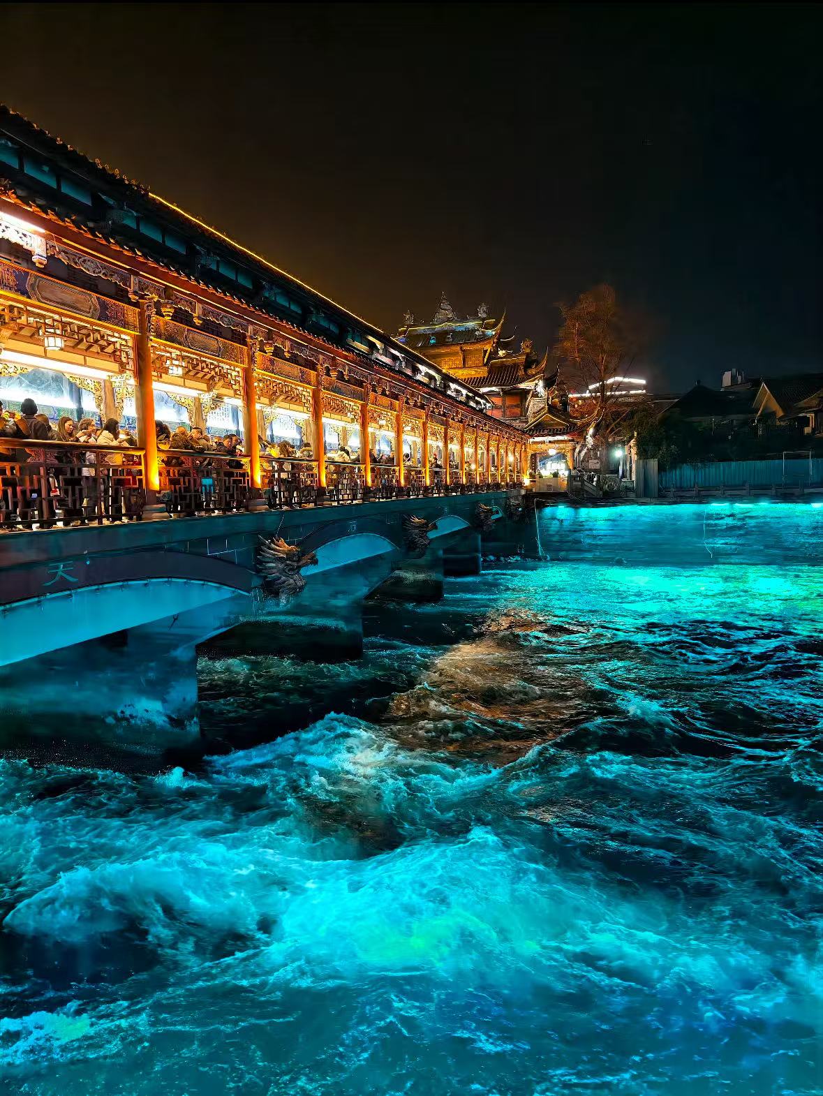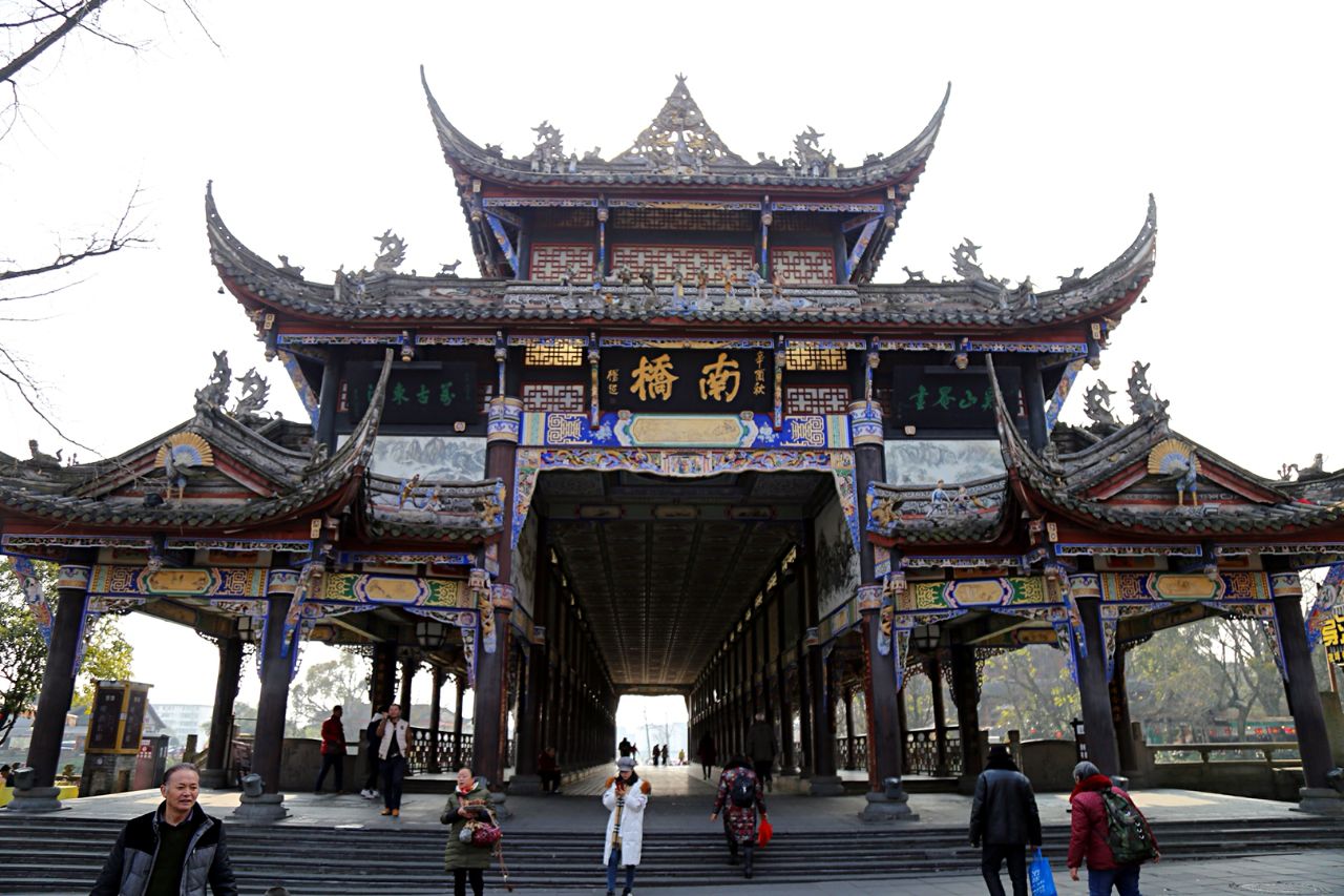 西街小巷一路逛吃后来到【都江堰南桥】,是南街与复兴街之间的一座雄伟壮丽的廊式古桥。