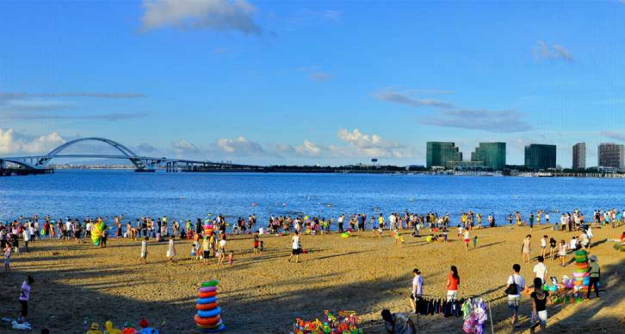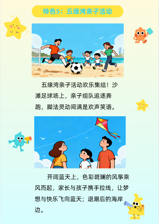 3、五缘湾沙滩亲子系列活动:沙滩足球、风筝赛、乐趣赶海。