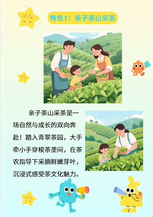 晚餐后,入住酒店休息。今日亲子活动:亲子茶山采茶,观看中、日、韩三国茶艺表演。
