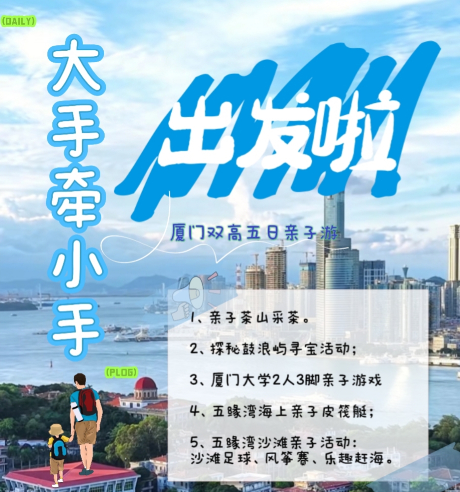 这条“大手牵小手·厦门双高五日亲子游”线路,主打深度亲子互动与特色文化体验双重卖点。既安排了茶山采茶、鼓浪屿寻宝、厦门大学2人3脚游戏等趣味活动,又有五缘湾海上皮筏艇、沙滩足球风筝赛赶海等动感项目,还能探秘天福茶博物院、埭美古村感受闽南文化。从自然采茶到人文探索,从海岛冒险到校园嬉戏,全方位满足亲子家庭在游玩中增进感情,打造一段充满欢笑与成长的厦门亲子之旅。
