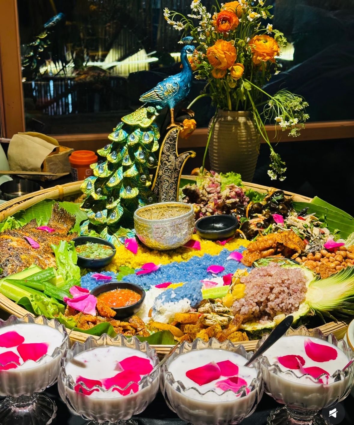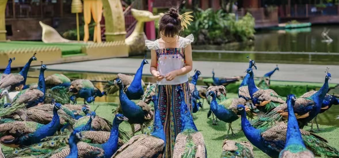 午餐我们特别安排傣味孔雀宴。何谓“孔雀宴”,孔雀宴就是过去傣族皇室接待贵宾的宴席,是傣家最具特色的宴席之一,它融合了傣族人民聪明、勤劳和爱美的特性。孔雀宴汇聚了傣家最具特色的佳肴美味,采集原生态新鲜食材用烤、炸、煎、炒、煮、凉、蒸、舂等傣家传统烹饪方法精心制作而成,摆放成孔雀开屏的形状,象征着幸福安康象征着吉祥如意。