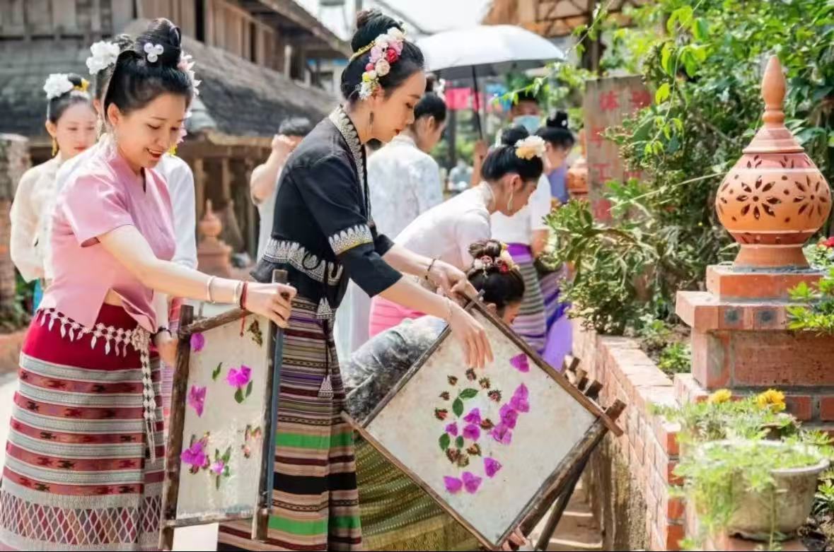 早餐后乘车前往游览参观——傣家村寨。漫步寨中,遍地花木扶疏,青葱蓊郁的宽叶芭蕉,绿树环抱的傣家竹楼与田园交错,虔诚供奉的佛寺在晨光中熠熠生辉。您将在这里了解到傣家传统佛教文化、村寨文化,以及纯朴的民族文化、体验民居、民俗、民族手工艺。