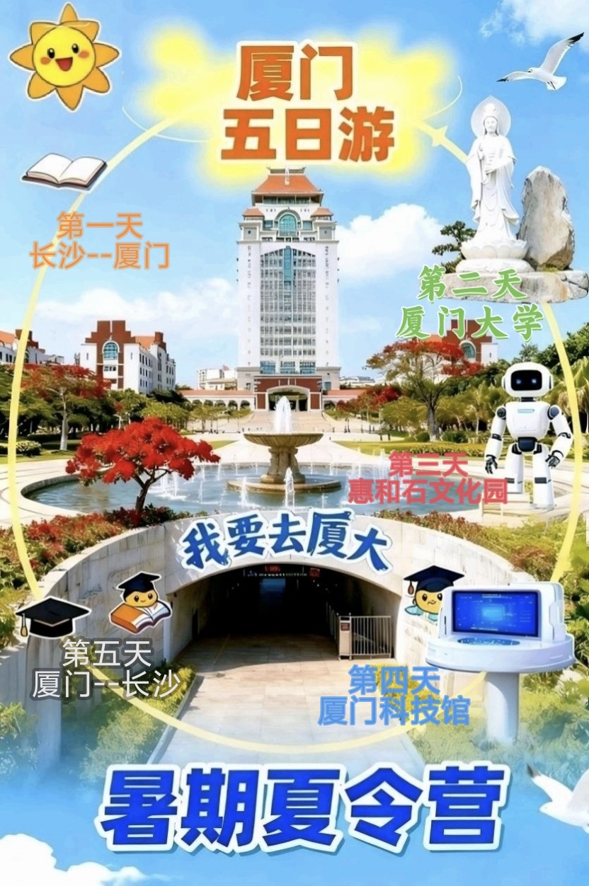 双主题核心体验:融合厦大研学(高校氛围沉浸)+海岛探险(鼓浪屿寻宝等),学玩结合。