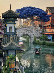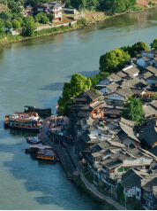 午餐后参观4A级景区天工开物(游览约1.5小时)【天工开物】:4A级景区,水晶珍品博物馆、水晶佛文化陈列馆、以及水晶精品展销区——展馆以远古佛教故事为载体,采用水晶宝石语言诠释和演绎水晶文化,馆内独特的场景,无论是地球之心的建筑轮廓,佛祖修炼的洞穴,佛陀顿悟的菩提树,五彩的星座神话,华丽璀璨的弥勒世界,全部采用稀有的水晶宝石,并充分运用创新的陈列技术,将环幕投影、幻影成像、水幕投影、全息成像、虚拟现实等高科技技术将现代科技运用到物理场景里面,通过声、光、电、多媒体手段为国内外游客展示乐山、峨眉山博大精深的佛教文化,同时为观者诠释魂牵梦绕的水晶魔力,带给游客崭新的视觉之旅。随后,前往黄龙溪千年古镇游览(约1小时)【黄龙溪古镇】:黄龙溪建镇已2100多年,历史底蕴深厚,古名“赤水”。又名永兴场。黄龙溪的核心景区是以古镇为中心的5平方公里的地区,她以古街、古树、古庙、古堤、古埝、古民居、古码头、古战场、古崖墓和古衙门的“十古”著称。