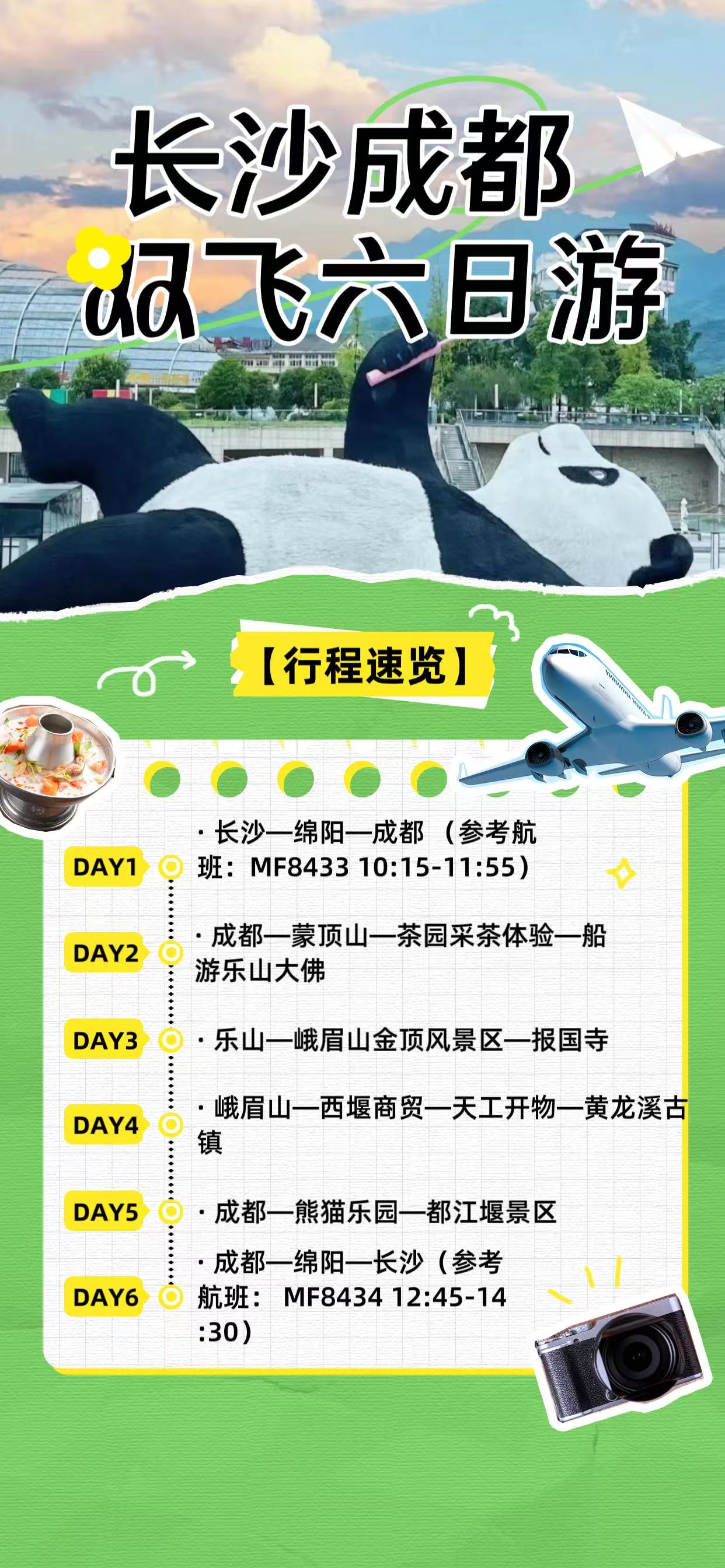 1、交通:长沙-绵阳经济舱,含机场建设及燃油费;当地空调旅游大巴
