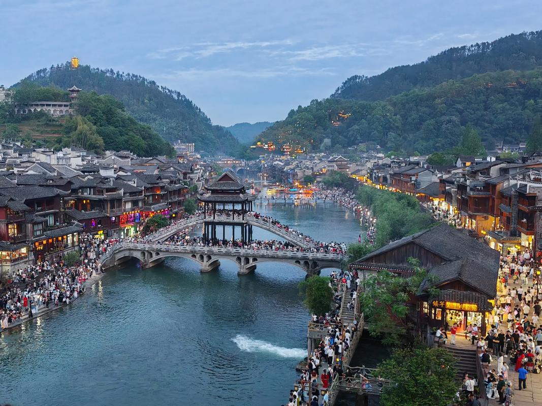 早上游览曾被新西兰著名作家路易艾黎称赞为中国最美丽的小城--【5A凤凰古城】感受灯火阑珊之凤凰,和烟雨凤凰,让你有一种如见海市蜃楼穿越时空之感,体验和感受凤凰古城的精华:一泓沱水绕城过、一条红红石板街、一道风雨古城墙、一座雄伟古城楼、一个美丽彩虹桥、一排小桥吊脚楼。