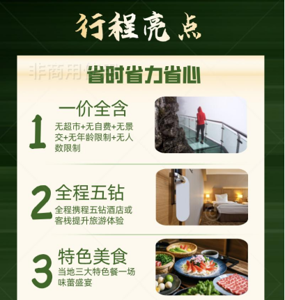 3、具备门票优惠政策的游客请带好有效证件,按我社相关折扣退还门票差额;