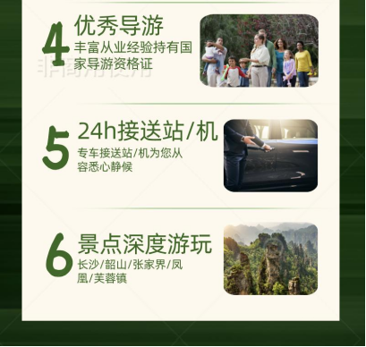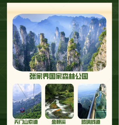 下午进入【张家界国家森林公园】(含进山大门票及环保车,赠送百龙天梯双程),走进神秘的潘多拉世界,前往游览【袁家界景区】,美国3D科幻巨片《阿凡达》中悬浮山外景拍摄地“哈利路亚山”原型“乾坤柱”,探寻电影《阿凡达》中群山漂浮、星罗棋布的玄幻莫测世界漫步“中国最美峡谷”—【金鞭溪景区】,呼吸免费新鲜空气,杉林幽静,穿行在峰峦幽谷间,溪水明净,水中小鱼穿梭而行,胜似画中游。