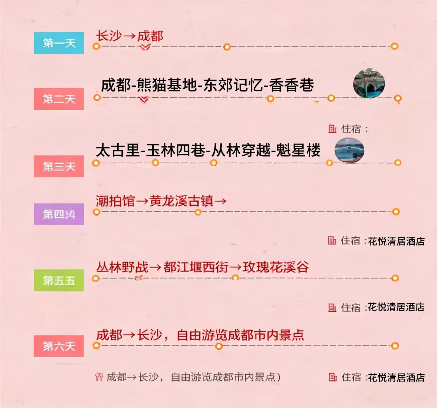 1、交通:长沙/成都往返经济舱机票,含机建燃油费;当地空调旅游大巴