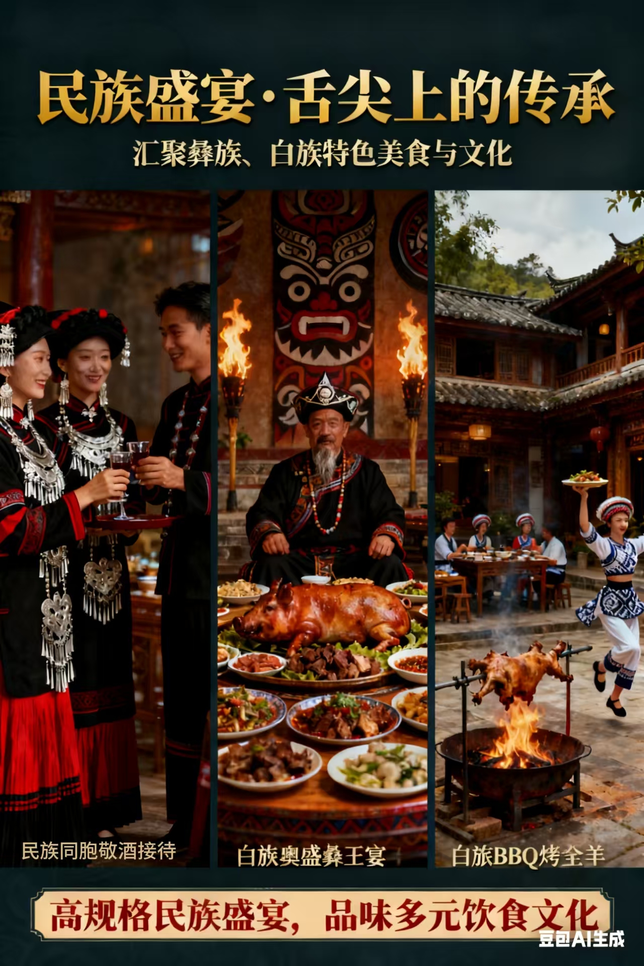 结束后安排享用【彝族迎宾宴】,穿上盛装的民族同胞用最热情敬酒歌迎接四方宾朋。之后乘车前往楚雄,抵达后安排享用晚餐【彝族盛宴】,彝王盛宴是彝族宴请贵宾的最高礼仪,相传,诸葛亮率军南征,五月渡泸,七擒七纵孟获,二人结为挚友。孟王感激之余,设宴款待丞相,以报再生之恩。彝王盛宴因而声名远播,载誉千年。彝王盛宴发扬彝州食之文化,传承彝人菜之经典。之后入住酒店休息。