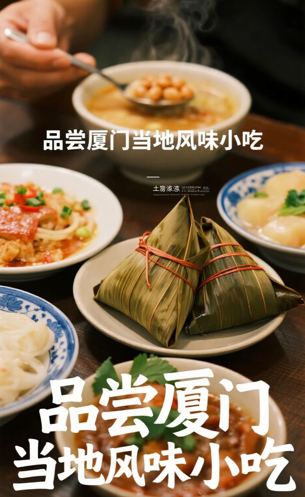 晚上可自行前往中山路步行街,可品尝厦门当地的风味小吃,其中花生汤、沙茶面、烧肉粽、土笋冻等小吃。