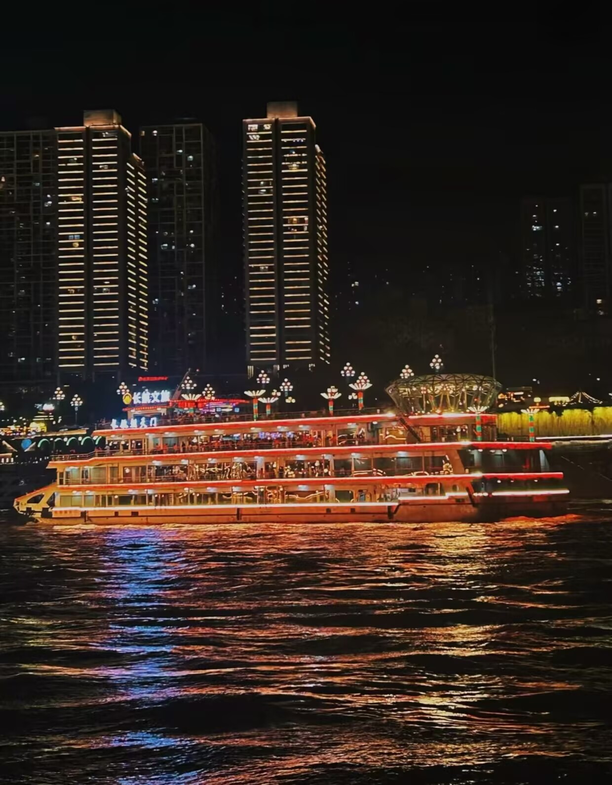 19:00 船游夜览长江(游览约45分钟)“不览夜景,枉到重庆”。山城重庆两江四岸的景色早在清代的时候即是巴渝名景之一。