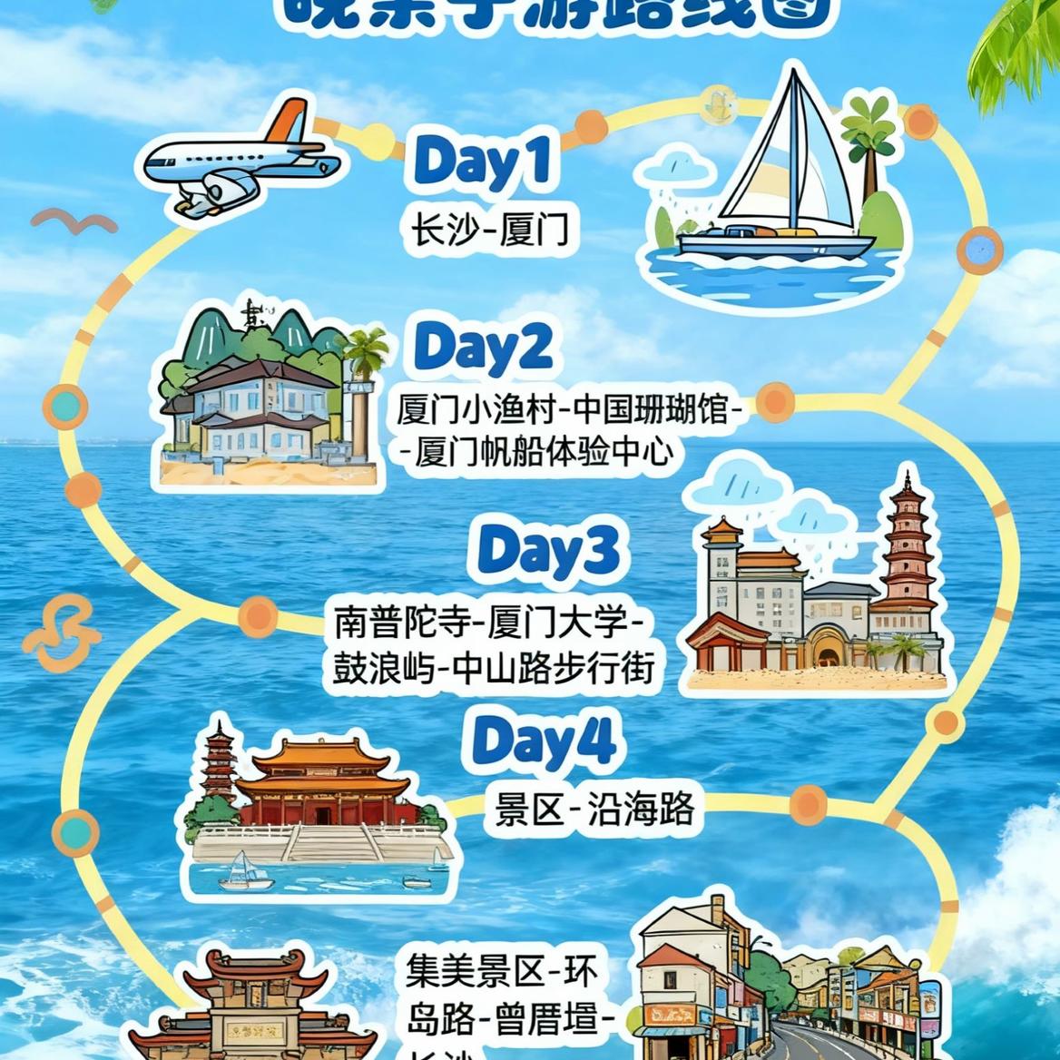 1、交通:长沙—厦门往返经济舱,含机场建设及燃油费;当地空调旅游大巴