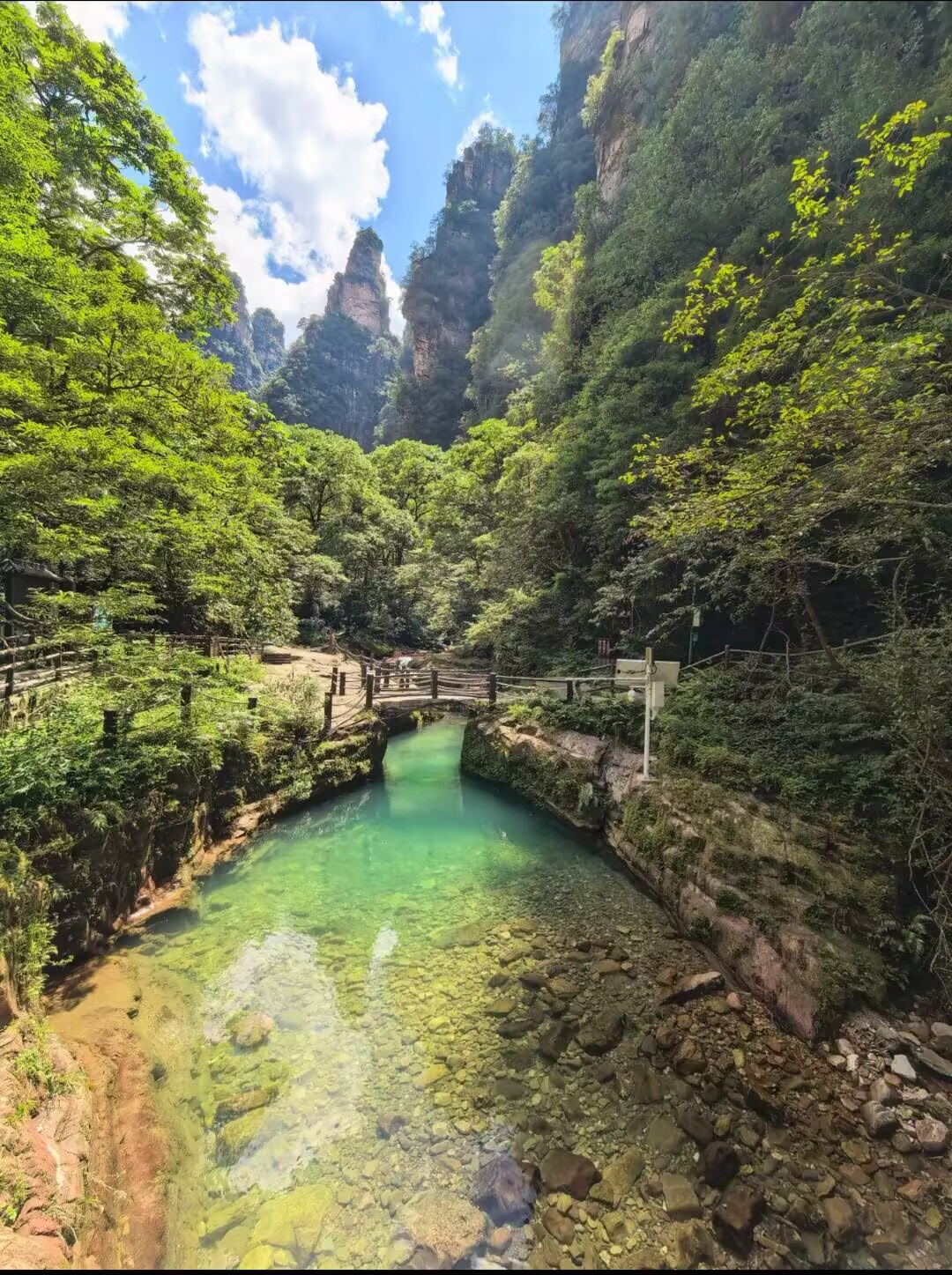 【张家界国家森林公园】(含进山大门票及环保车,赠送百龙天梯双程),走进神秘的潘多拉世界,前往游览【袁家界景区】,美国3D科幻巨片《阿凡达》中悬浮山外景拍摄地“哈利路亚山”原型“乾坤柱”,探寻电影《阿凡达》中群山漂浮、星罗棋布的玄幻莫测世界漫步“中国最美峡谷”—【金鞭溪景区】,呼吸免费新鲜空气,杉林幽静,穿行在峰峦幽谷间,溪水明净,水中小鱼穿梭而行,胜似画中游
