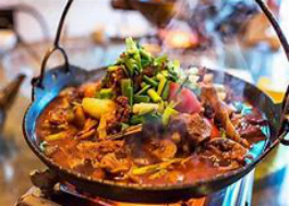 中餐升级为特色风味餐“三下锅”,张家界头牌菜,2009年荣登湖南14市州故乡菜之首。传明代嘉靖年间,朝廷征调湘鄂西土司兵上前线抗倭,恰好赶上年关,为不误军机,土司王下令提前—天过年,于是腊肉、豆腐、萝卜一锅煮,叫吃“合菜”,逐演变成“三下锅”。