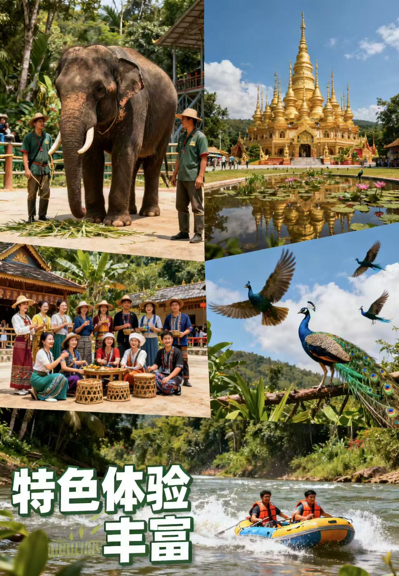4、景点及体验费用:野象谷门票(索道需自理),曼掌文化农庄体验(欢迎仪式、绝地求生活动),勐泐大佛寺门票及孔雀放飞、浴佛泼水活动,澜沧江漂流体验,雨林部落风情岛活动(骑马、夹脚舞等),傣族村寨参观,告庄西双景、星光夜市、六国水上集市游览。