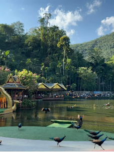 早餐请自行到曼掌村村民家享用,早餐后乘车游览【勐泐大佛寺】是在古代傣王国的王室寺院“景飘佛寺”原址上恢复重建的,“景飘佛寺”是傣族历史上一位名叫拨龙的傣王为纪念他的王妃南纱维扁而修建。王妃一生信奉佛法,所以每逢节日傣王就亲临寺院,举行大型法会,以纪念爱妃同时弘扬佛法。大佛寺最值得一看的是每天都有的【孔雀放飞】成千上万只孔雀从大佛所在的山上飞下来,场面很壮观,寓意着吉祥如意。还有【浴佛泼水】让所有人恢复本是善良的天性,毫无任何心思的将自己沉浸在欢乐之中,不去烦扰世间丝毫的苦恼,不去增加丝毫欲望,在这里,只管尽情的将圣洁的水泼洒天空,洗去身体和心灵的污垢。夏日正盛,午餐后来到景洪港,开始本次旅途的刺激探险之行——澜沧江激情漂流,被誉为“亚洲第一漂”与传统漂流项目不同,它以浪漫漂流为主,以观赏两岸雨林风光为辅,远离城市的繁华与喧嚣,寻找内心的宁静,特别安排【江中泼水节】互动狂欢。顺着澜沧江湄公河漂流来到神秘的【雨林部落风情岛】岛上居住着僾尼族、傣族等多个少数民族,登岛后赠送【天然氧吧骑马活动】、【僾尼族夹脚舞】,还有许多活动等你一探究竟。