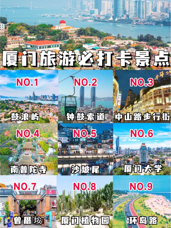 早餐后,前往千年古刹南普陀寺(游览时间不少于30分钟),依山傍海毗邻闽南佛学院,拥有浓郁的佛教氛围。外观—厦门大学校园内标志性的芙蓉湖就象一颗璀璨的明珠,在初夏和暖阳光的照耀下,熠熠生辉,美不胜收。沿途而至厦大芙蓉隧道,位于厦大内部,芙蓉餐厅旁,有文艺隧道,有涂鸦隧道,是厦门大学主要景点之一,吸引着无数文艺青年及游客来此观光。下午乘轮渡前往鼓浪屿(游览时间不少于90分钟),感受鼓浪屿百年沧桑,沿途经过欣赏各国领事馆旧址、天主教堂。望别具风格“万国建筑博物馆”之称的鼓浪民居,探寻名人足迹。还可望日光岩、郑成功雕像。港仔后沙滩自由散步,土特产一条街自由购物。自由活动。