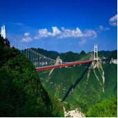 早起后,乘车前往吉首,参观【湘西丝绸博物馆】(参观时间90分钟)。后乘车前往矮寨奇观景区,游览【悬崖栈道】(门票已含),全长1.5公里,垂直落差500米,采用现代设计语言,萃取“蝴蝶”、“飘带”等苗族文化元素,以期形成戏剧性“跌宕起伏”、“惊心动魄”的旗帜性游步道系统。游览悬崖栈道时不仅可以欣赏到山高谷深、崖陡壁俏、林深路幽、巍峨险峻的武陵山脉中最精彩、最险峻、最梦幻的地段,更有天桥(矮寨大桥)、天路(公路奇观)、天台(天问台)交相辉映、互为景致,移步入云,一步一景,构成人文与自然共生,壮丽于精巧同在的峡谷奇观。后至【矮寨大桥】(门票已含),乘观光电梯至大桥观光通道,近距离观亚洲第一的斜拉式铁索桥矮寨大桥,桥面设计标高与地面高差达330米左右。桥型方案为钢桁加劲梁单跨悬索桥,全长1073.65m。悬索桥的主跨为1176m。该桥跨越矮寨大峡谷,主跨居世界第三、亚洲第一。矮寨公路奇观一览无余,让您美景中感叹的祖国的强大。