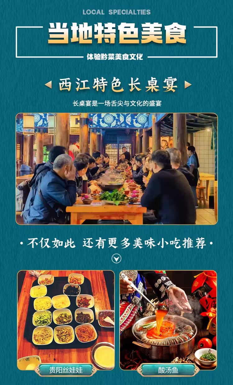 。在苗寨【西月火塘苗味馆】品尝苗族特色美食,如酸汤鱼、鼓藏肉、糯米酒等,感受苗族饮食文化的独特魅力。