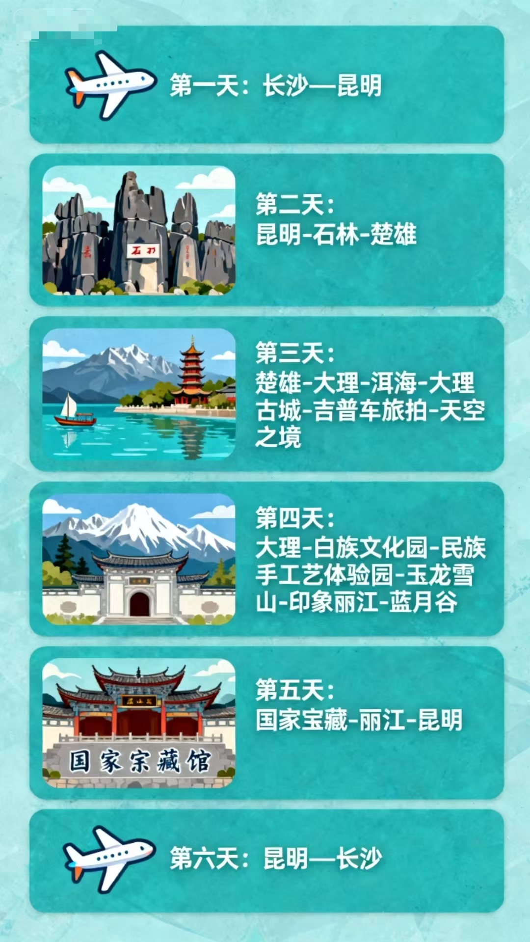 第六天:早起送机返回长沙,结束难忘的云南之旅.