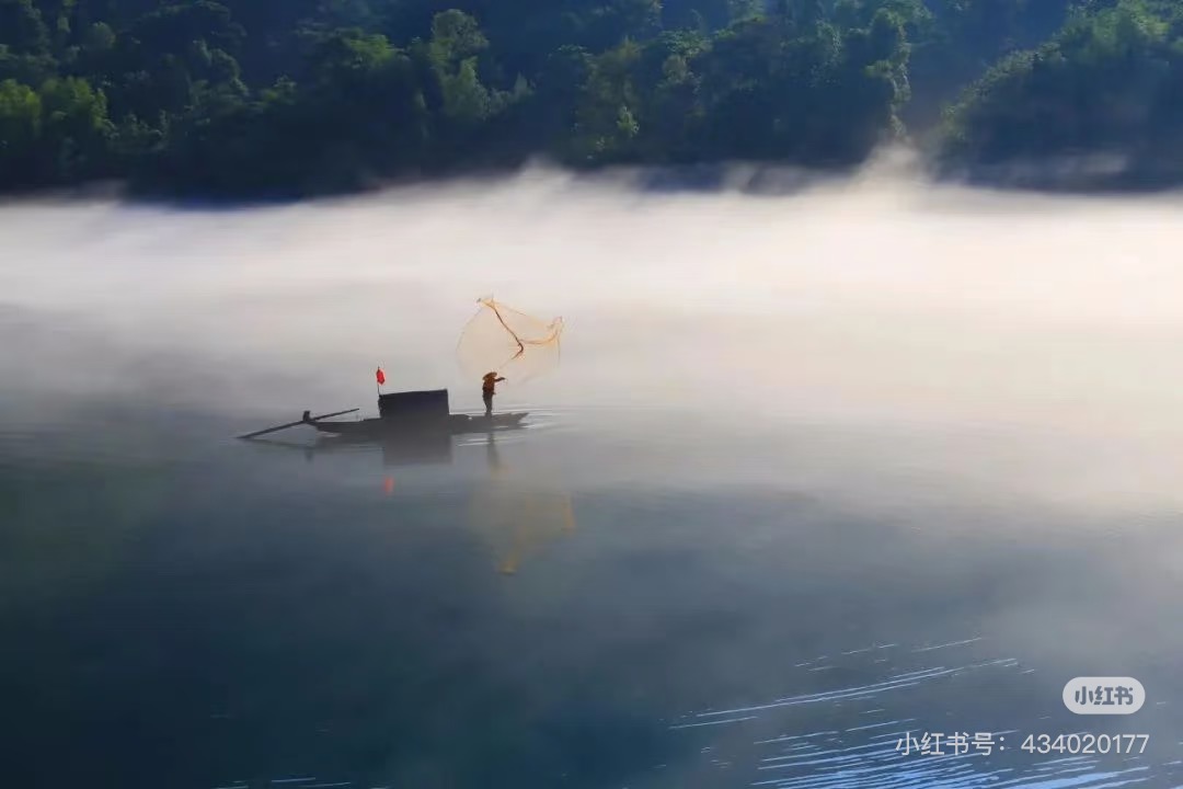 雾漫小东江的奇幻之美:清晨的小东江被薄雾笼罩,宛如仙境,渔夫撒网的画面极具诗意,是摄影爱好者的绝佳取景地,也能让游客沉浸式感受山水间的朦胧意境。