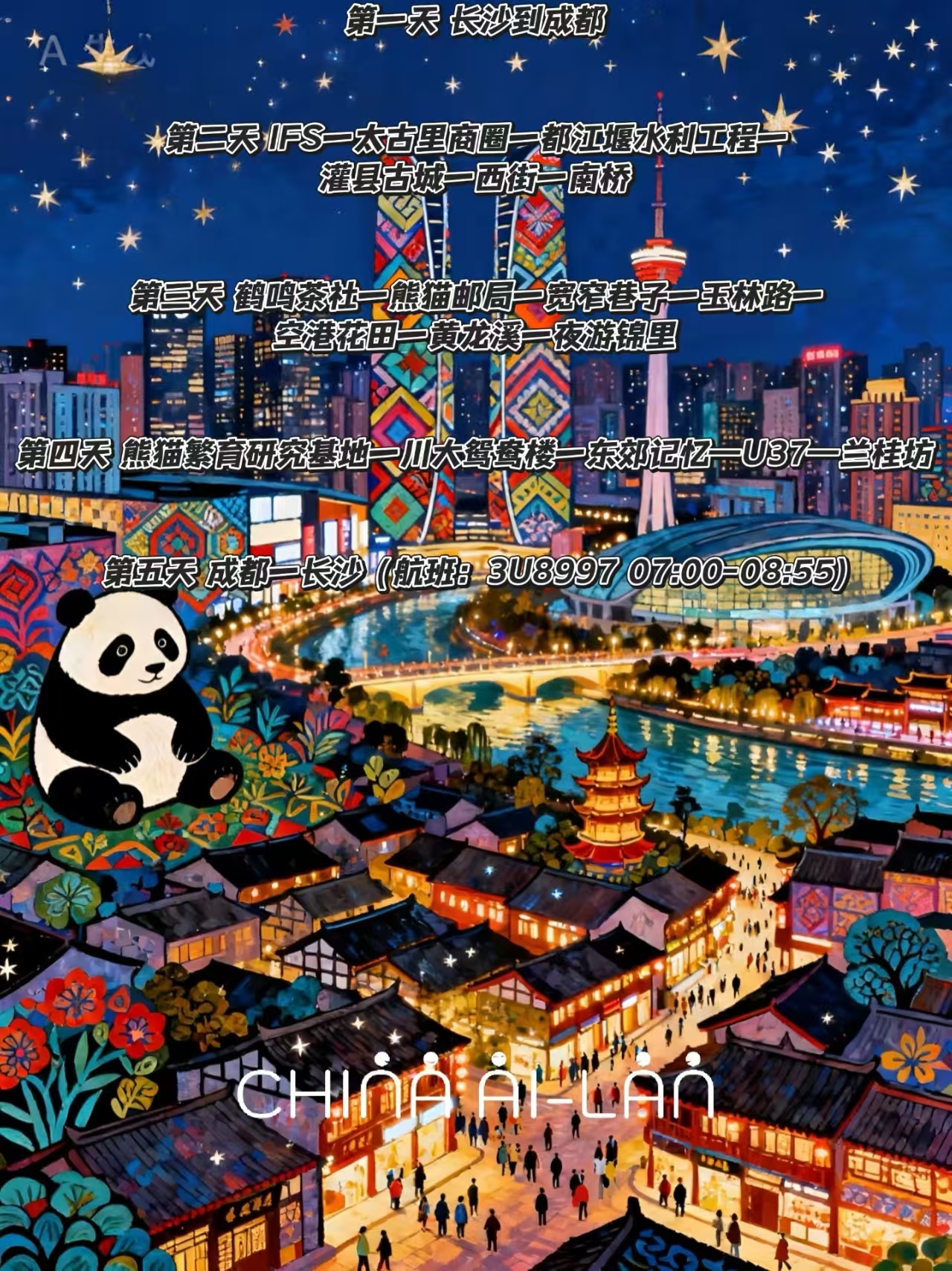 1、交通:长沙/成都往返经济舱机票,含机建燃油费;当地空调旅游大巴