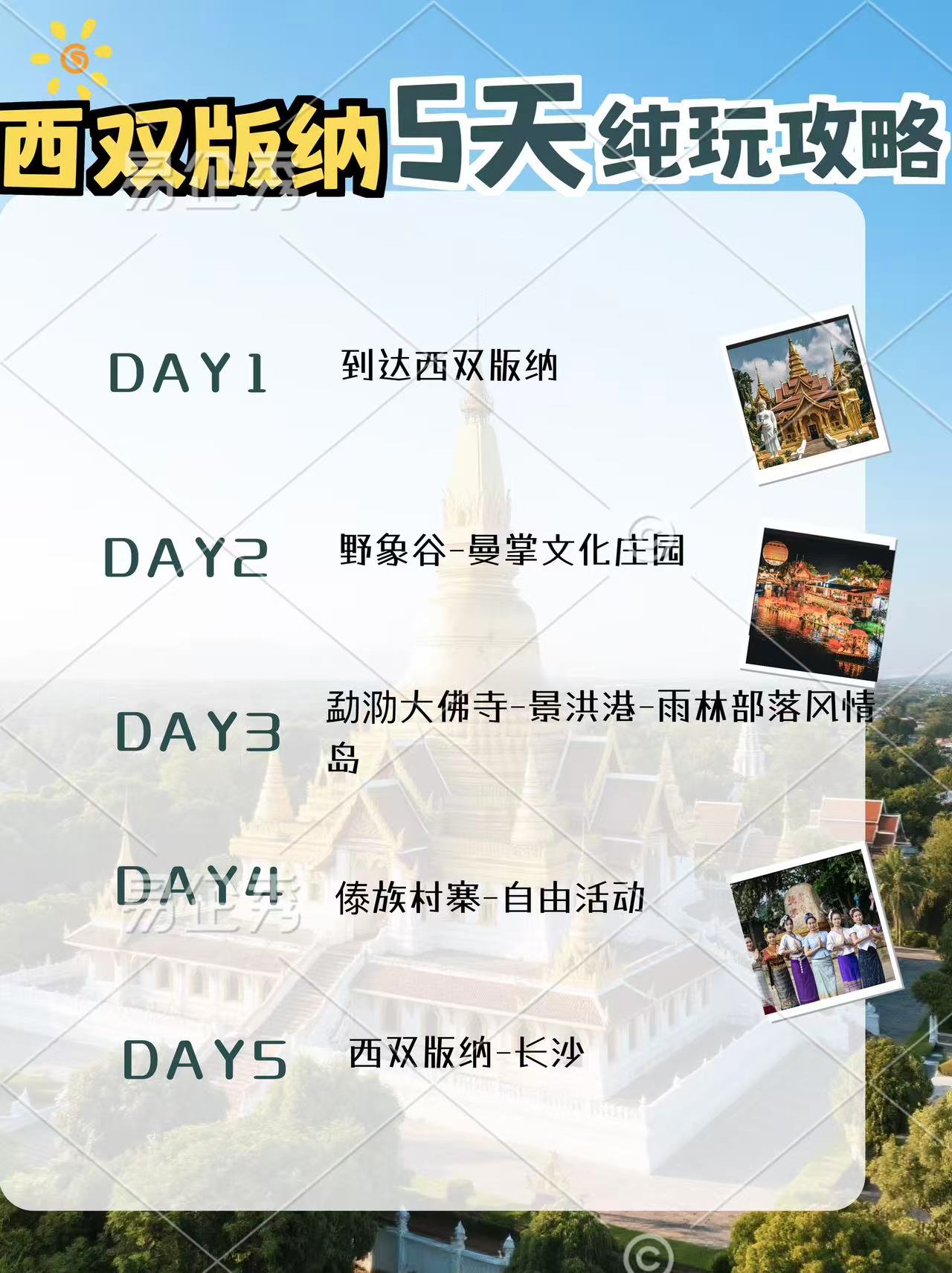 1、交通:长沙—版纳往返经济舱,含机场建设及燃油费;当地空调旅游大巴