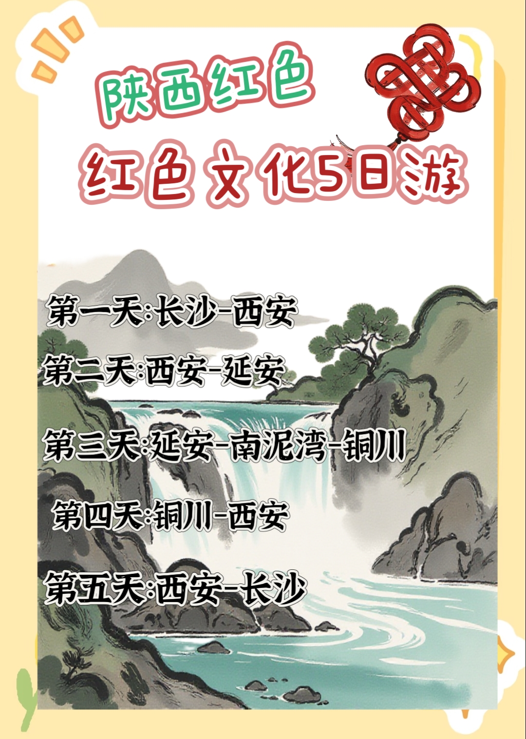 午餐后乘坐CZ6944次飞机(15:30-17:40)返回长沙,结束此次愉快的陕西红色文化之旅。