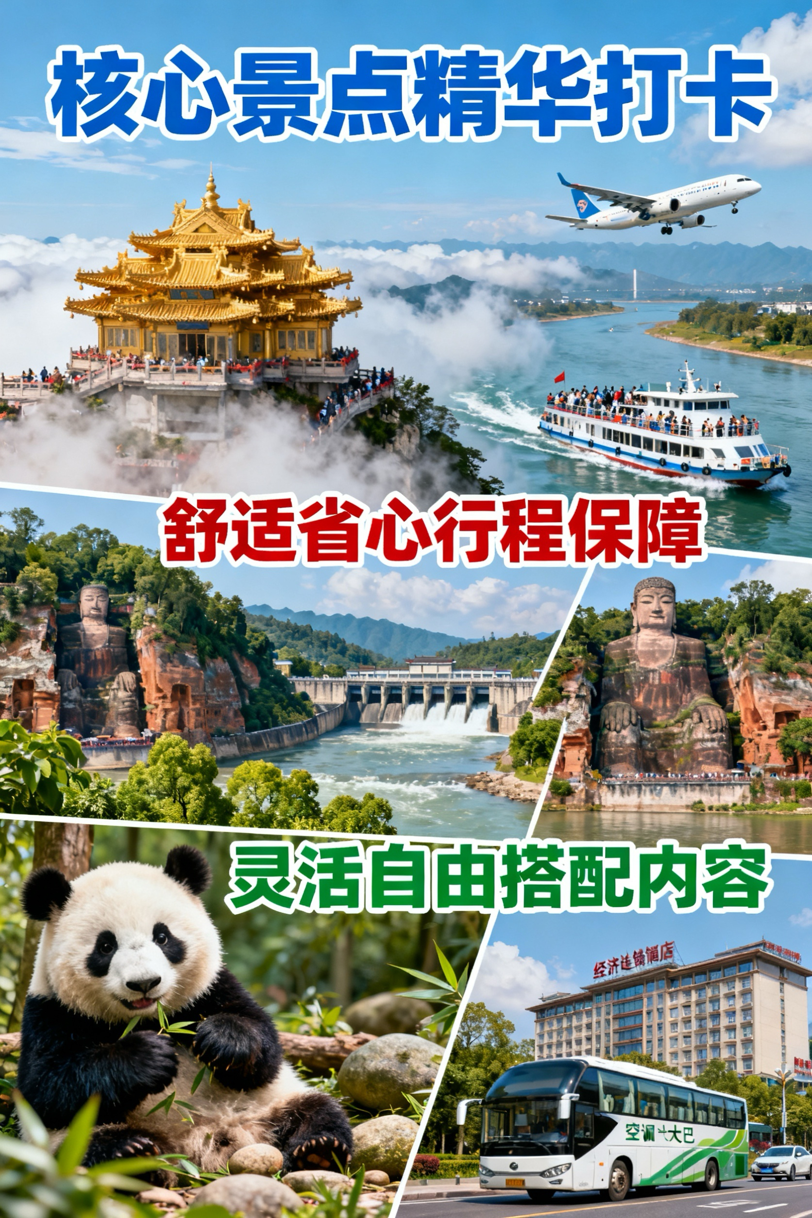 早餐后前往风情古街【象城禅意小镇】,这里传承了川西仿古建筑风格,融入了当地的文化风情。是峨眉山市颇具特色的民俗文化旅游街。【游船乐山】:告别超3小时排队,拒绝往返25层楼高徒步,这才是欣赏大佛更好的角度!乘船观看大佛全貌,更好的感受大佛威严壮观,并诚心为自己,为家人,为朋友祈福!
