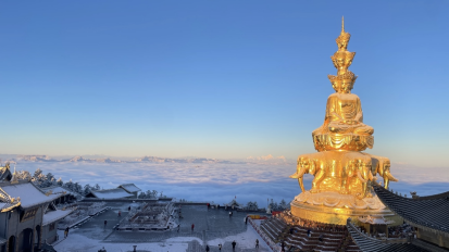 早餐后,前往峨眉山。【峨眉山-金顶】乘坐观光车(费用90元自理,上行索道80/下行索道40需自理)至雷洞坪,徒步至接引殿。峨眉金顶是以一尊48米高的十方普贤铜像为中心,由耀日的金殿、雄浑的铜殿、灼灼的银殿和洁白的朝圣大道组成的新金顶。金顶为峨眉山游程的最高峰,其海拔为3077米。顶上是个小平原,原有铜殿一座,在太阳的照射下,光彩夺目,故而得名金顶。登上金顶,人们顿觉万象排空,气势磅礴,惊叹天地之奇妙。在峨眉山金顶,还可能欣赏峨眉的四大奇景:日出、云海、佛光、圣灯。