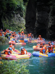 早餐后乘车前往前往【九天玄女洞】--“滴石铸玄女,暗河镂九天”。首先由专人带领一起“竹竿舞”,领略土家风情、后游览“亚洲第一洞”九天洞,面积250多万平方米,相当于400个标准足球场大小,被亿万游客誉为“世界奇迹”、“亚洲最大、世界最奇”、“溶洞女王”。后游览【茅岩河平湖游】,茅岩河是一幅多彩多姿、生动活泼的水国画,是一帧竞奇斗艳、婀娜多娇的青山图。然后游玩【茅岩河漂流】项目(平湖游和漂流为赠送项目,若因天气原因无法游玩漂流或自身原因不参加,费用不退),目前已成为中国最大的和最安全的旅游漂流项目,是张家界“山、水、洞”旅游精品项目中最富刺激的项目。与浪共舞,一漂难忘,驾橡皮舟沿茅岩河漂流而下,漂流水程20公里,落差66米,有惊无险的河滩共55个。结束茅岩河漂流行程后乘车返回张家界市区,入住酒店休息。