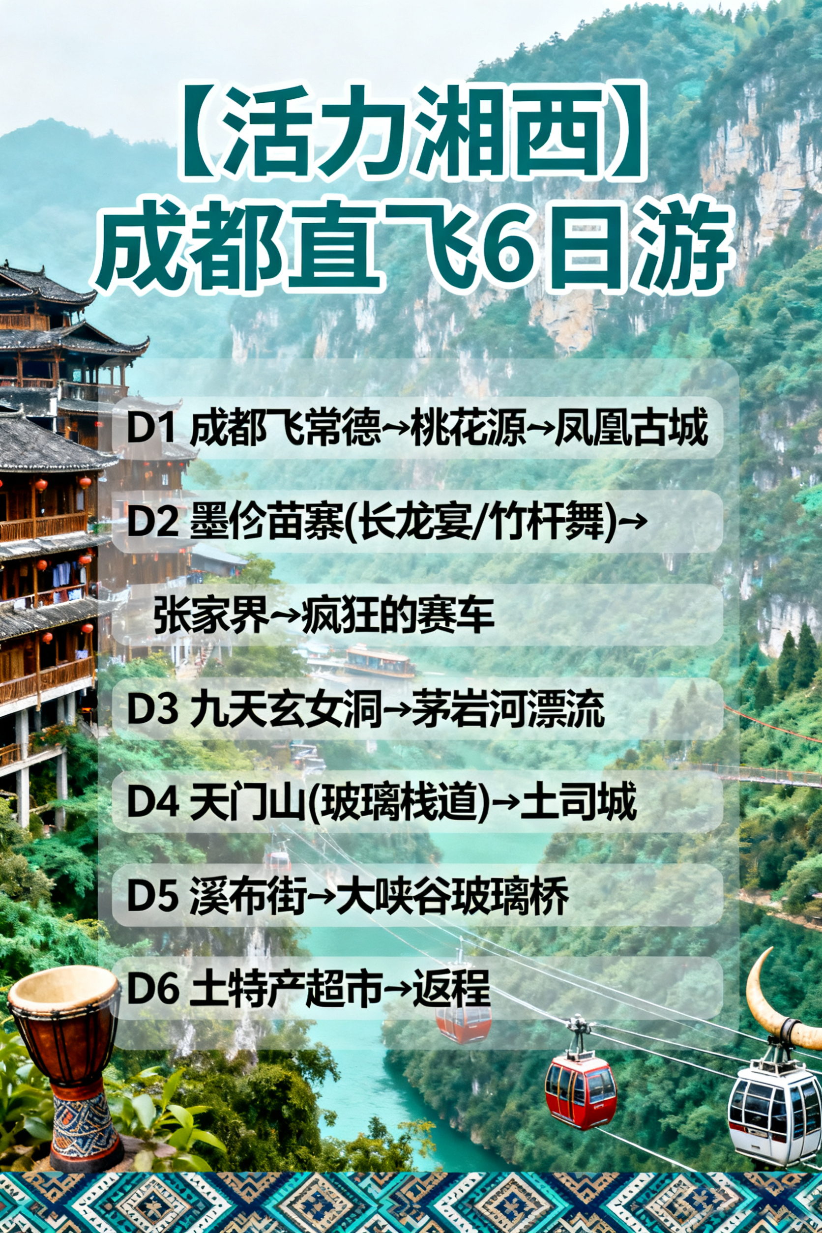 1、交通:成都—常德往返经济舱,含机场建设及燃油费;当地空调旅游大巴