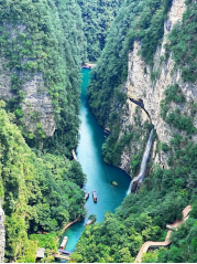 下午游览国家 AAAA 景区有“小九寨沟”之称的—【张家界大峡谷景区+玻璃桥】,位于张家界市慈利县三官寺乡,紧邻世界自然遗产、世界地质公园张家界武陵源风景名胜区。主要景点:一线天、天梯栈道、三叠游道平台、吴王坡、石壁裂缝、千年古藤、神泉峡等。大峡谷中的飞瀑神泉比比皆是,一路游览下来,让人目不暇接。峡谷里植被繁茂,空气清新,凉爽舒适,溪水上弥漫着一层薄雾,宛如来到世外桃源,让人烦恼顿消。