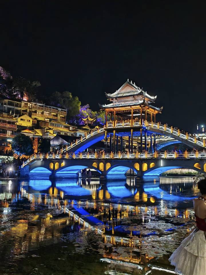 晚上漫步在灯光下的古城中,可以在各个小店或者婆婆们的摊位上一尝古城特色小吃:湘西腊肉,血粑鸭,酸辣子粑粑,米豆腐,虾饼,苗家酸萝卜,蒿子粑粑……也可以捧一杯啤酒,坐在沱江边的酒吧中,吹着江风,听着酒吧那或清雅或摇滚的音乐,感受着古城的独特风情!凤凰古城特色酒吧:三十九度吧,愚人码头,湘西往事等等。