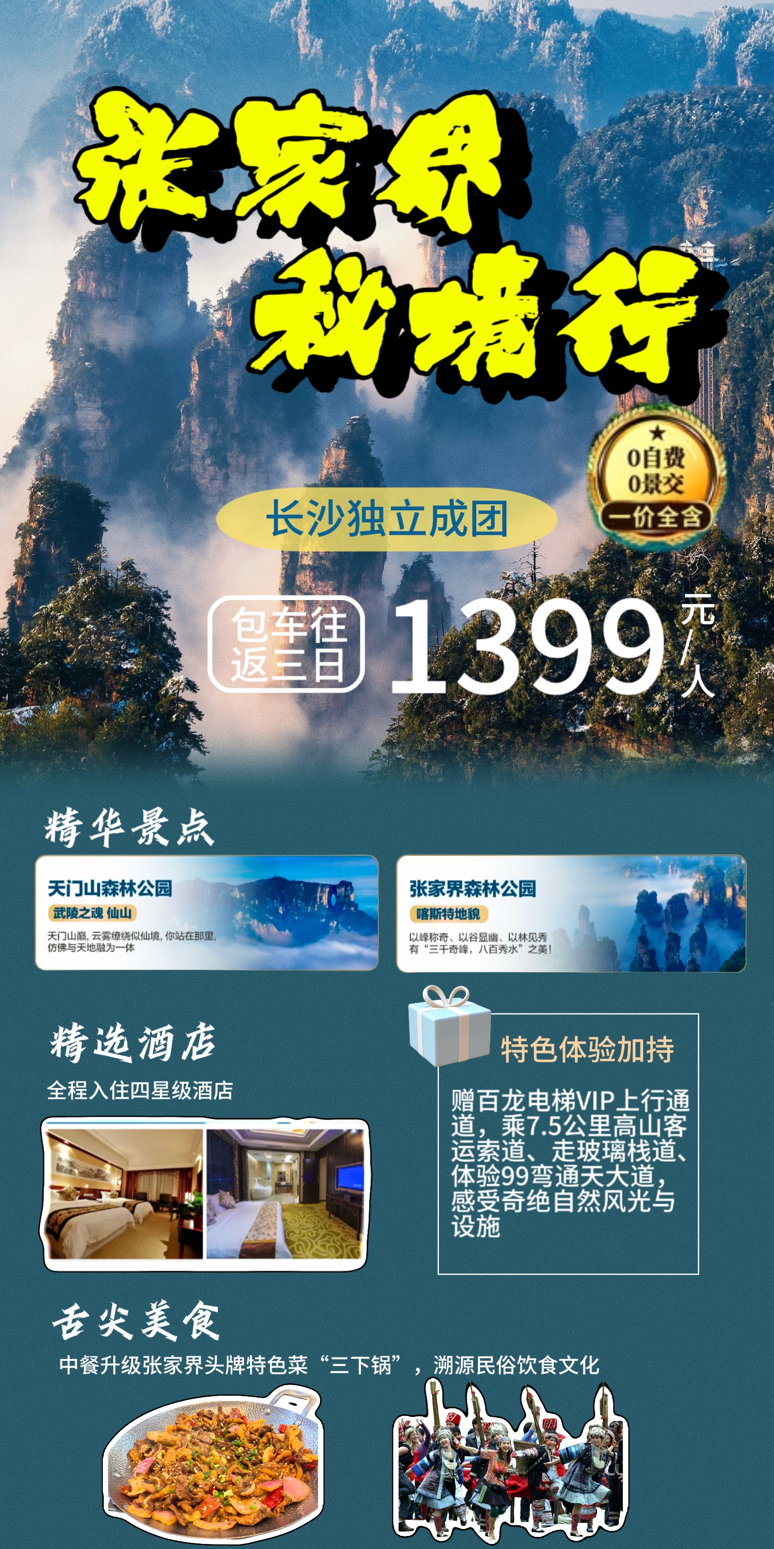 5. 服务:持证导游全程陪同讲解(含湘西民俗文化、景点历史解读),赠全程旅游意外险;