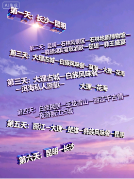1、交通:长沙—昆明往返经济舱,含机场建设及燃油费;当地空调旅游大巴