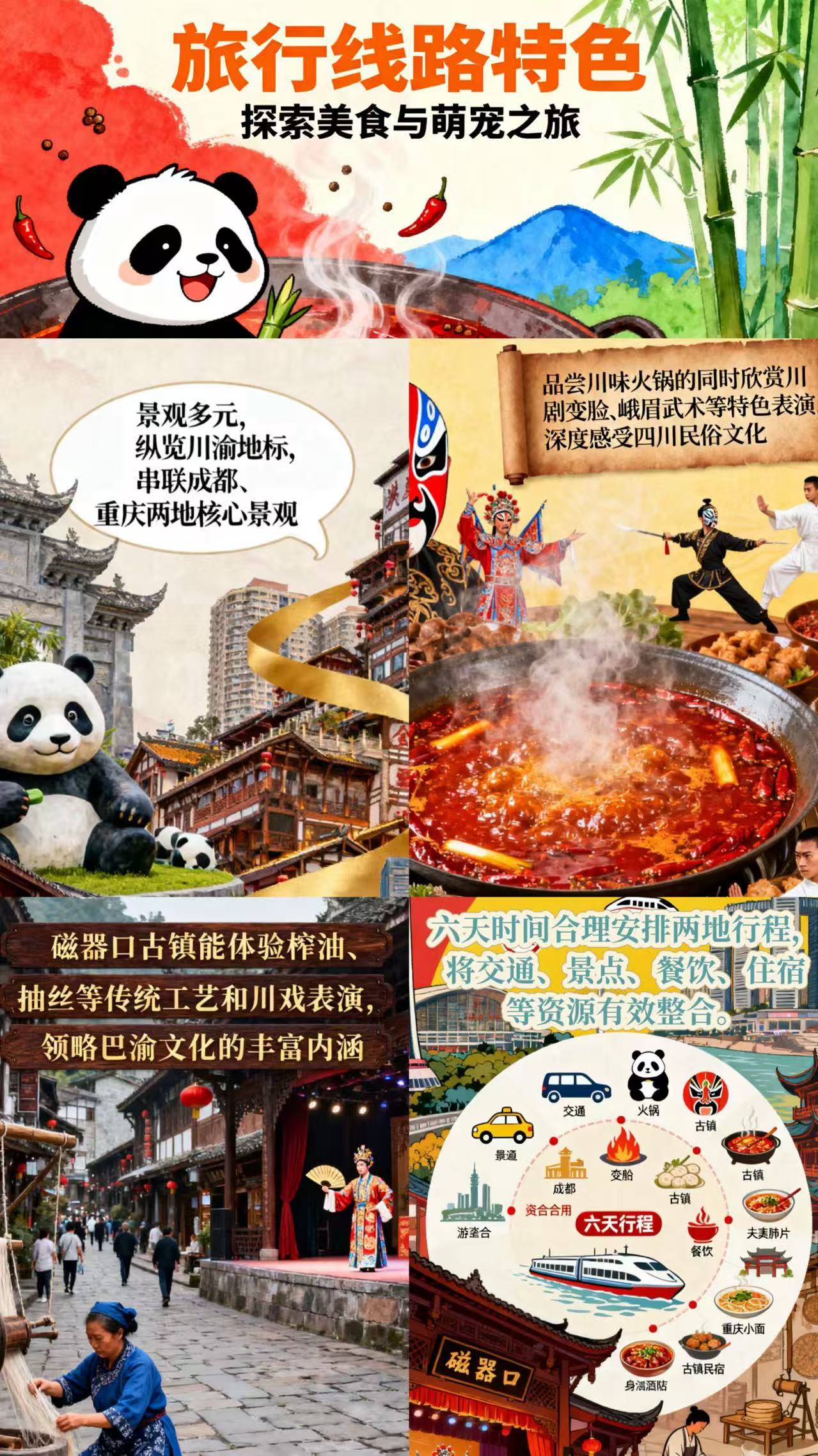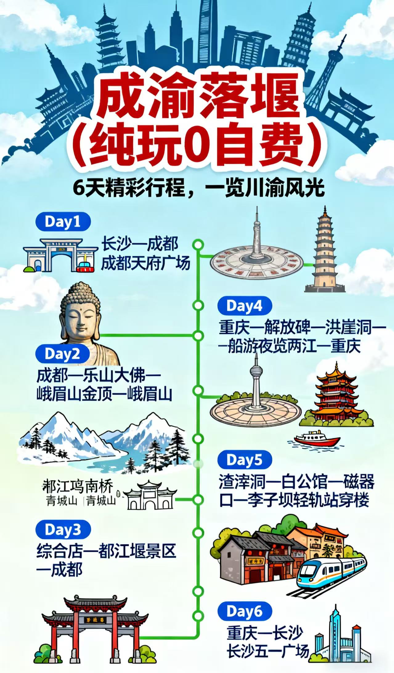 • 交通:长沙-成都、重庆-长沙往返高铁二等座;当地空调旅游大巴