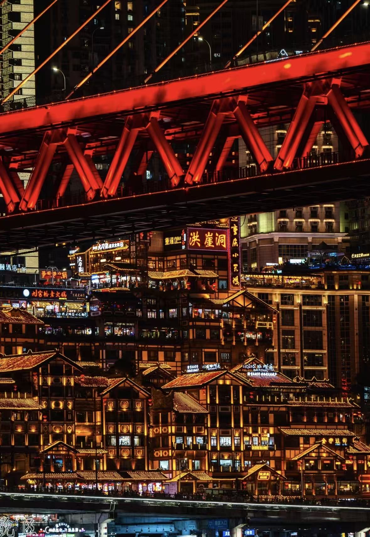 16:30 游览洪崖洞(游览2小时)洪崖洞,拥有2300多年的历史。原名洪崖门,是古重庆城门之一,以其巴渝传统建筑和民俗风貌特色而被评为国家AAAA级旅游景区,该景区以拥城市旅游景观、商务休闲景观和城市人文景观于一体而闻名,并以最具巴渝传统建筑特色的"吊脚楼"风貌为主体,依山就势,沿崖而建,让解放碑直达江滨,是游吊脚群楼、观洪崖滴翠、逛山城老街、赏巴渝文化、看两江汇流、品天下美食的好去处,也是解放碑的会客厅。