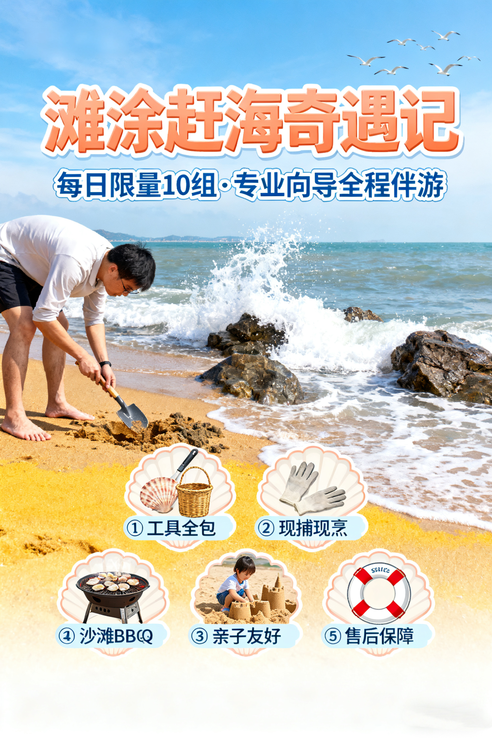 厦门小渔村·赶海趣玩厦门小渔村·赶海趣玩上午:跟随教练前往小渔村,穿渔靴、背渔篓,在滩涂聆听金门列岛科普,体验【围网捕鱼】,收获海蟹、皮皮虾等海货,随后前往餐厅免费加工享用午餐。
