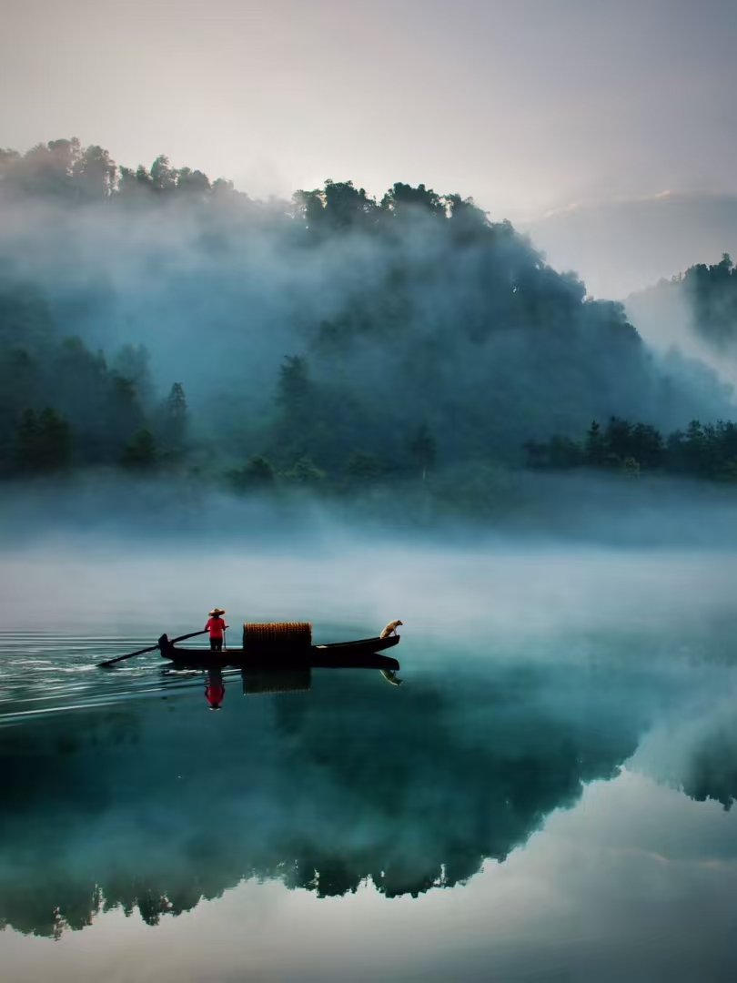 小东江的晨雾绝绝子,渔夫撒网跟画里一样,拍照发圈绝配!