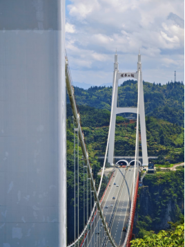 它横跨德夯大峡谷,主跨1176米,桥面距峡谷底部355米,是世界跨峡谷跨径最大的钢桁梁悬索桥。设计融入苗族文化,兼具通行与观光功能,可驾车穿行、登桥远眺,还能搭配悬崖栈道俯瞰,感受工程震撼与湘西山水的险峻壮阔