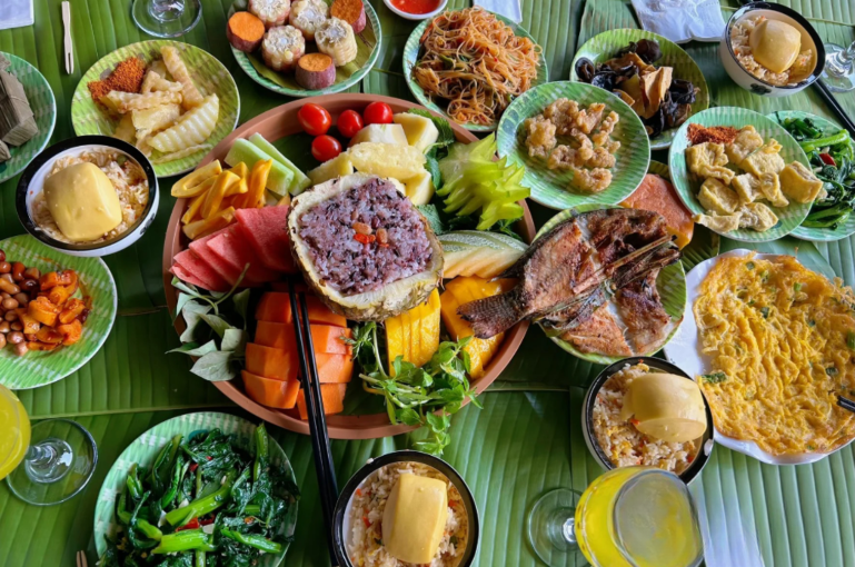 午餐我们特别安排傣味孔雀宴。何谓“孔雀宴”,孔雀宴就是过去傣族皇室接待贵宾的宴席,是傣家最具特色的宴席之一,它融合了傣族人民聪明、勤劳和爱美的特性。孔雀宴汇聚了傣家最具特色的佳肴美味,采集原生态新鲜食材用烤、炸、煎、炒、煮、凉、蒸、舂等傣家传统烹饪方法精心制作而成,摆放成孔雀开屏的形状,象征着幸福安康象征着吉祥如意。