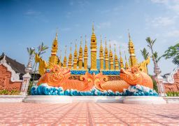 下午乘车前往南传佛教的圣地、世界南传佛教文化中心-【勐泐大佛寺】(游览时间2小时左右,可自愿自费乘坐游览观光车单程40元/人,往返60元/人),佛寺按照国家AAAAA级景区标准打造,是在古代傣王朝的皇家寺院“景飘佛寺”的原址上恢复重建的;景区以佛祖释迦牟尼的生平及佛寺活动为主线,九龙浴佛、景飘大殿、神石、国殿、吉祥大佛等,充分展示南传佛教的历史与传统文化色彩。从万佛塔前广场俯视景洪市区,旖旎的热带风光尽收眼底,可体验最具傣族传统特色的泼水体验活动,不在泼水节,一样湿身狂欢,尽情释放,佛光普照之下,为您带来更多的祝福。