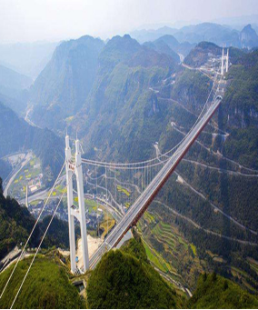 早起后,乘车前往吉首,参观【湘西丝绸博物馆】(参观时间90分钟)。后乘车前往矮寨奇观景区,游览【悬崖栈道】(门票已含),全长1.5公里,垂直落差500米,采用现代设计语言,萃取“蝴蝶”、“飘带”等苗族文化元素,以期形成戏剧性“跌宕起伏”、“惊心动魄”的旗帜性游步道系统。游览悬崖栈道时不仅可以欣赏到山高谷深、崖陡壁俏、林深路幽、巍峨险峻的武陵山脉中最精彩、最险峻、最梦幻的地段,更有天桥(矮寨大桥)、天路(公路奇观)、天台(天问台)交相辉映、互为景致,移步入云,一步一景,构成人文与自然共生,壮丽于精巧同在的峡谷奇观。后至【矮寨大桥】(门票已含),乘观光电梯至大桥观光通道,近距离观亚洲第一的斜拉式铁索桥矮寨大桥,桥面设计标高与地面高差达330米左右。桥型方案为钢桁加劲梁单跨悬索桥,全长1073.65m。悬索桥的主跨为1176m。该桥跨越矮寨大峡谷,主跨居世界第三、亚洲第一。矮寨公路奇观一览无余,让您美景中感叹的祖国的强大。