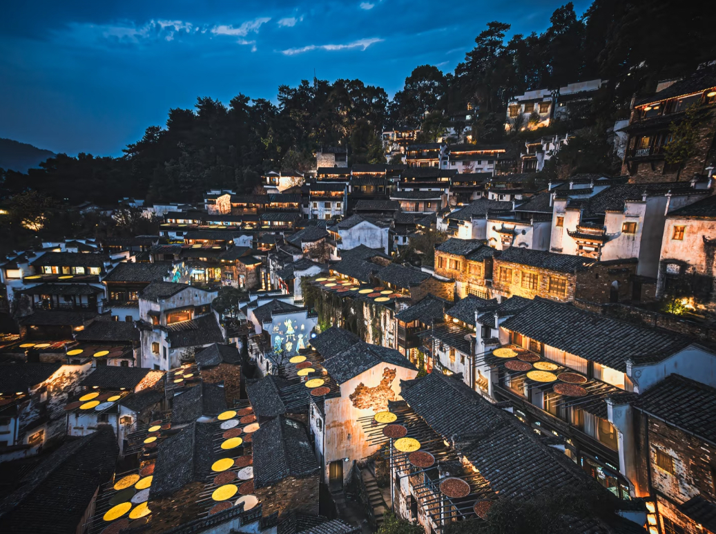 午餐后14:00团队前往婺源簧岭,这里建村于明代中叶,有580多年历史。村落民居围绕水口呈扇形梯状错落排布,被称为“梯云人家”。篁岭以“晒秋”闻名,屋顶架晒农作物极具层次感。还有水墨梯田,被评为“全球十大最美梯田”,三月油菜花海美如仙境。此外,花溪水街、水口雨林等景点也别具特色。
