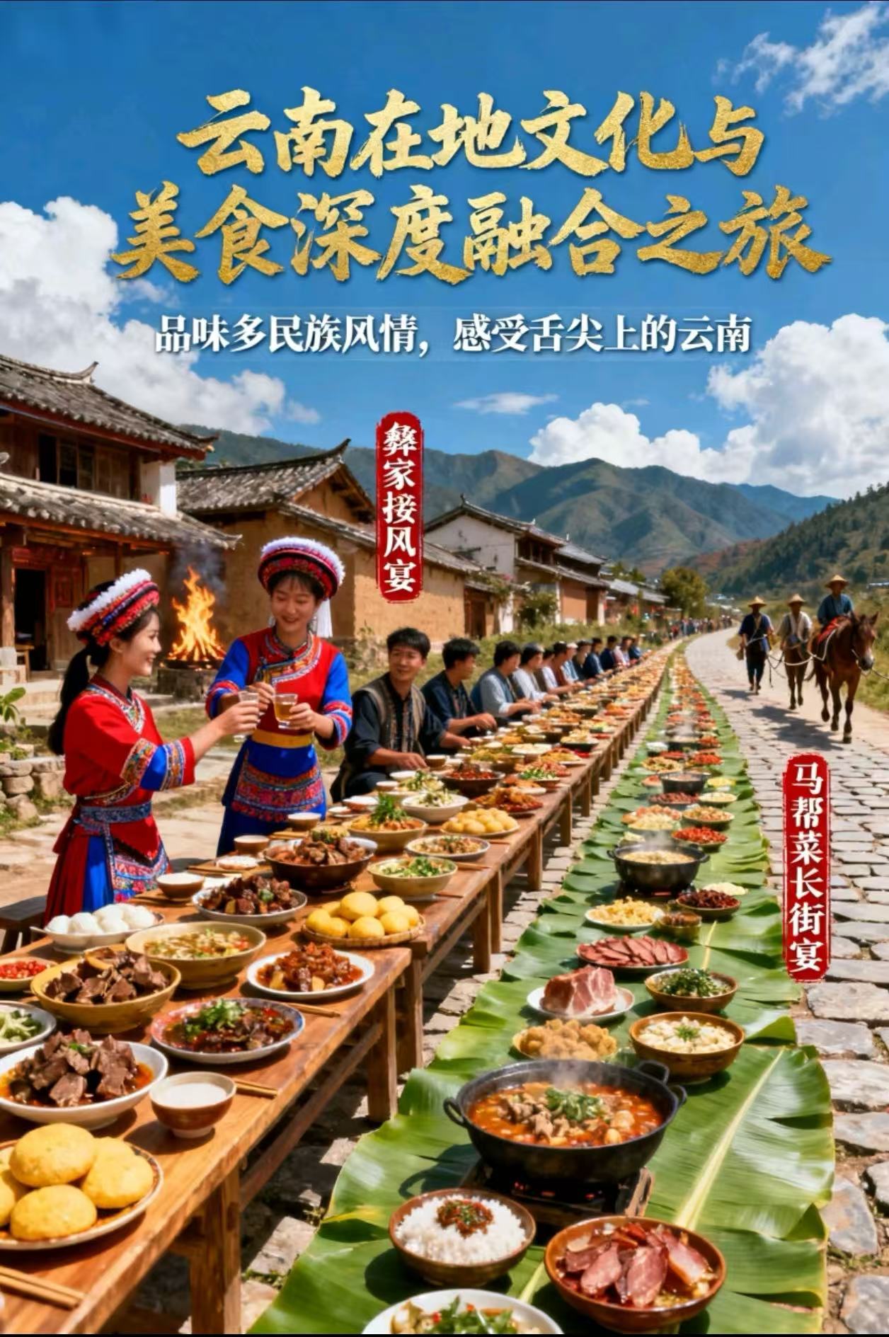 3. 在地文化与美食深度融合:全程嵌入民族特色餐饮,如彝家接风宴、马帮菜长街宴、让游客通过饮食感受云南多民族文化;